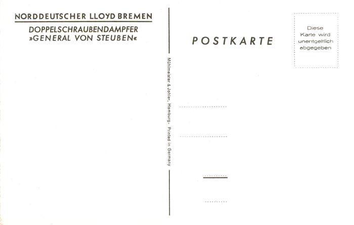 73932444 Dampfer Oceanliner Norddeutscher Lloyd Bremen General von Streuben postalisch nicht gelaufen Erhaltung siehe scans [IrynaD87] KatCode: 22480000000700