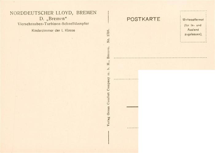 73893744 Dampfer Oceanliner Norddeutscher LLOYD Bremen postalisch nicht gelaufen Erhaltung siehe scans [IrynaD87] Iryn Katcode 22480000000700