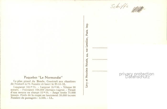 11730599 Dampfer Oceanliner Paquebot Le Normandie KatCode 22480000000700