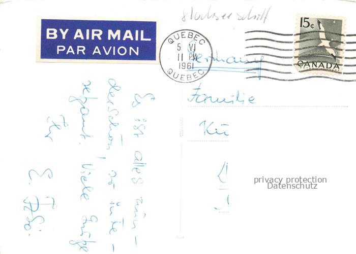 74052037 alte Postkarte Dampfer Oceanliner Quebec postalisch gelaufen Erhaltung siehe scans [IrynaD87] KatCode: 22480000000700
