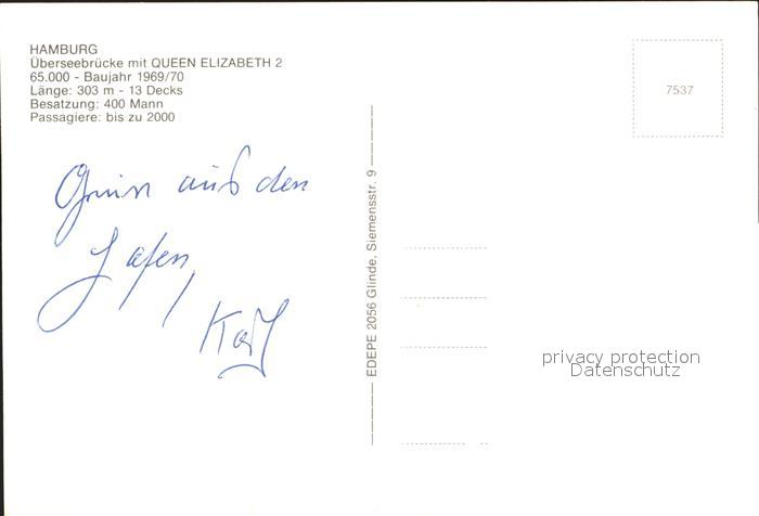 Dampfer Oceanliner Queen Elizabeth 2 Hamburg ueberseebruecke postalisch nicht gelaufen Erhaltung siehe scans