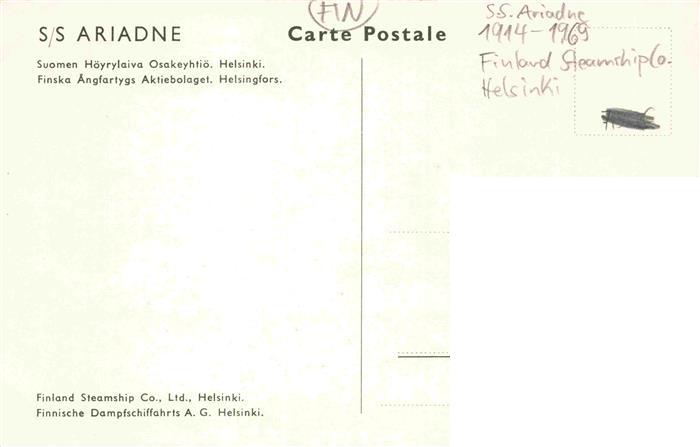 74011930 Dampfer Oceanliner S/S Ariandne Finland Helsinki postalisch nicht gelaufen Erhaltung siehe scans [SanaeD93] KatCode: 22480000000700