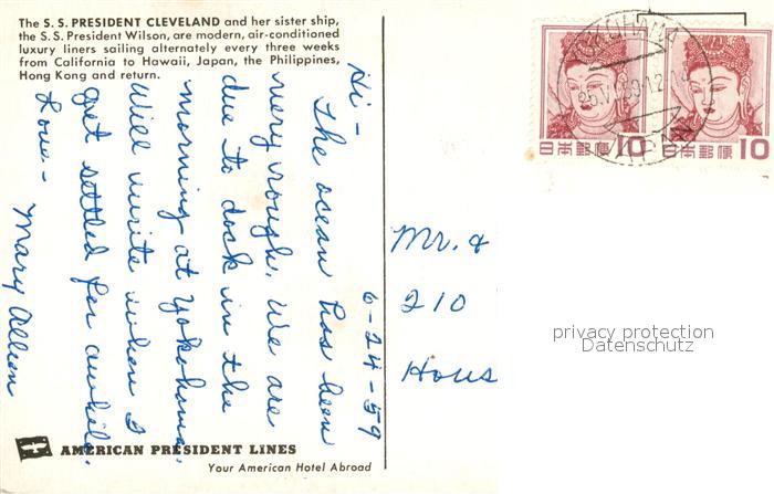73484277 Dampfer Oceanliner S.S. President Cleveland postalisch gelaufen Erhaltung siehe scans [PaolaD17] alte Postkarte Paol Katcode 22480000000700