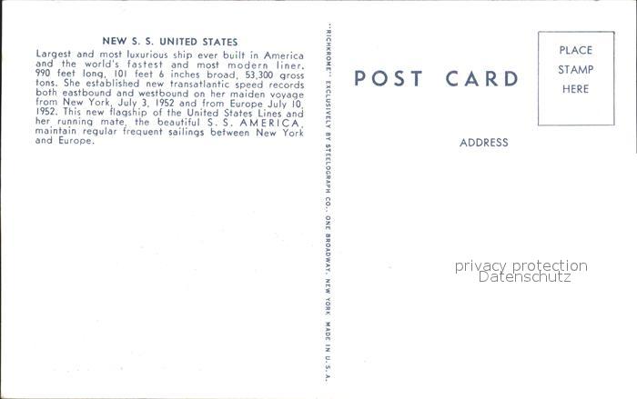 Dampfer Oceanliner S.S. United States postalisch nicht gelaufen Erhaltung siehe scans