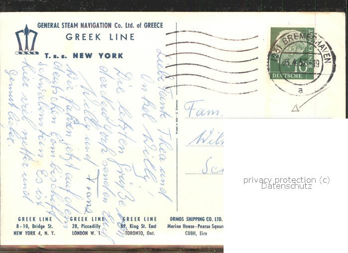 11547324 Dampfer Oceanliner T.S.S. New York Greek Line KatCode 22480000000700