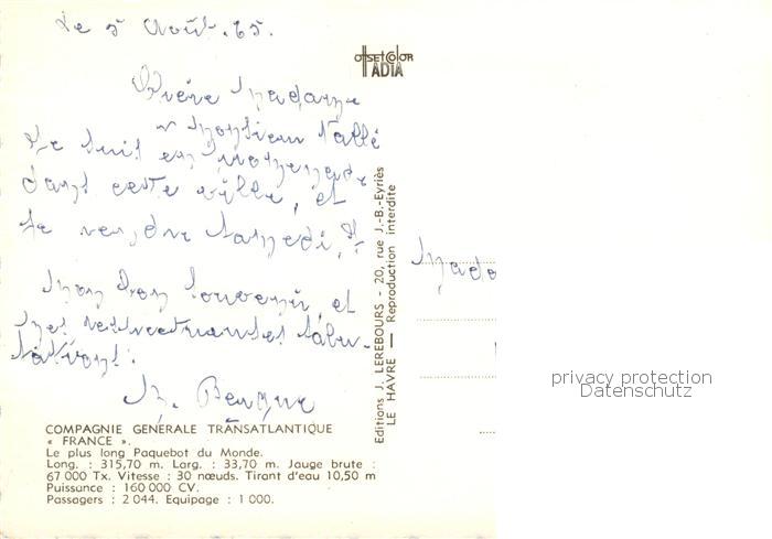 alte Postkarte Dampfer Oceanliner Transatlantique FRANCE postalisch gelaufen Erhaltung siehe scans [IrynaD87]