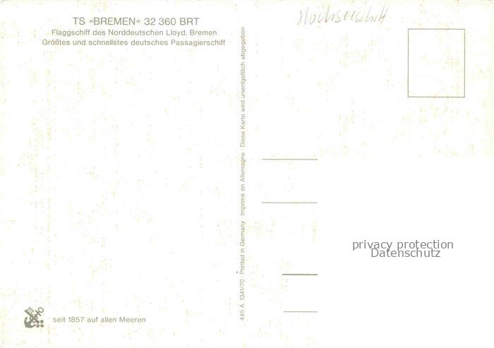 74051955 Dampfer Oceanliner TS Bremen 32 360 BRT postalisch nicht gelaufen Erhaltung siehe scans [IrynaD87] KatCode: 22480000000700