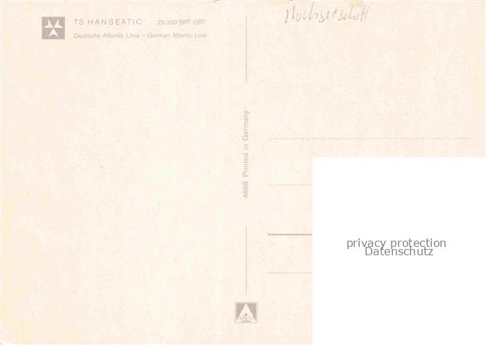 74052029 Dampfer Oceanliner TS Hanseatic 25300 BRT/GRT postalisch nicht gelaufen Erhaltung siehe scans [IrynaD87] KatCode: 22480000000700