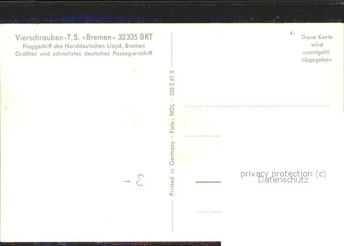11547166 Dampfer Oceanliner Vierschrauben-T.S. Bremen KatCode 22480000000700