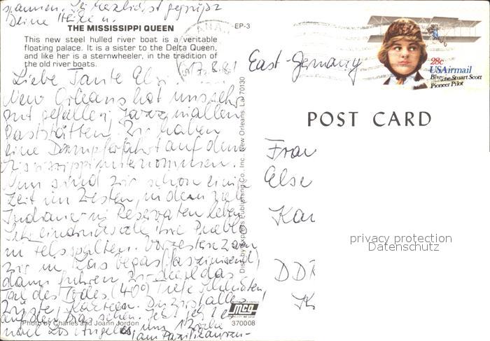 alte Postkarte Dampfer Schaufelrad Mississippi Queen postalisch gelaufen Erhaltung siehe scans