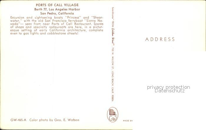 Dampfer Schaufelrad Ports Call Village San Pedro California postalisch nicht gelaufen Erhaltung siehe scans
