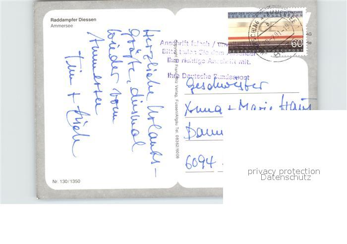 alte Postkarte Dampfer Seitenrad Diessen Ammersee postalisch gelaufen Erhaltung siehe scans