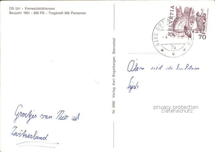 alte Postkarte Dampfer Seitenrad DS Uri Vierwaldstaettersee postalisch gelaufen Erhaltung siehe scans