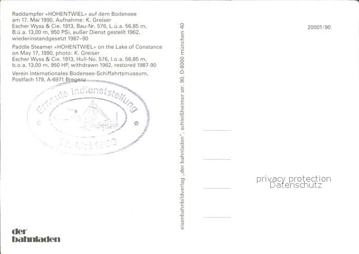 72124390 Dampfer Seitenrad Hohentwiel Bodensee KatCode 22480000000500