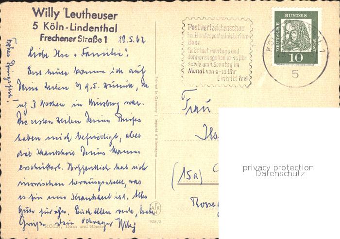alte Postkarte Dampfer Seitenrad Koeln Rhein Dom postalisch gelaufen Erhaltung siehe scans