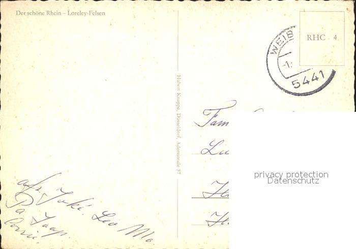 alte Postkarte Dampfer Seitenrad Loreley-Felsen Rhein postalisch gelaufen Erhaltung siehe scans
