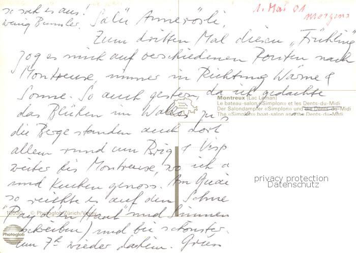 alte Postkarte Dampfer Seitenrad Montreux postalisch gelaufen Erhaltung siehe scans [IrynaD87]