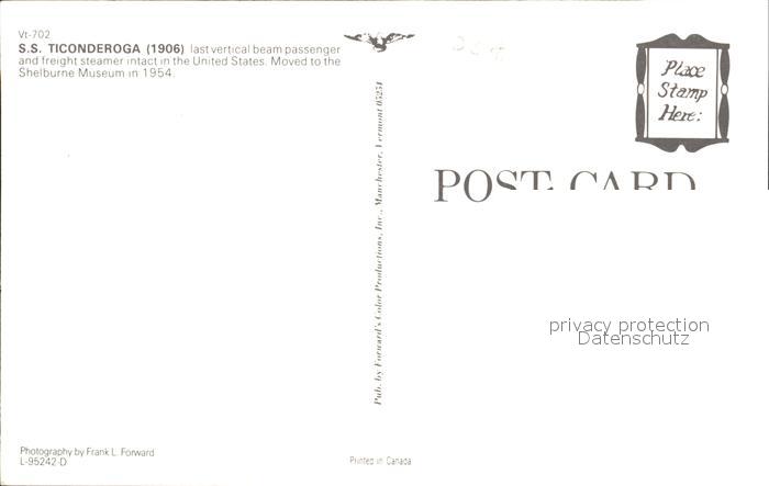 Dampfer Seitenrad S.S. Ticonderoga USA postalisch nicht gelaufen Erhaltung siehe scans