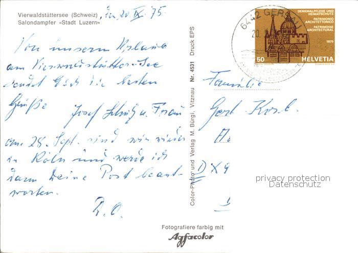 alte Postkarte Dampfer Seitenrad Stadt Luzern Vierwaldstaettersee postalisch gelaufen Erhaltung siehe scans