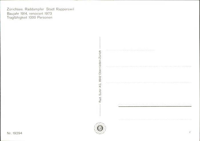 71373646 Dampfer Seitenrad Stadt Rapperswil Zürichsee KatCode 22480000000500
