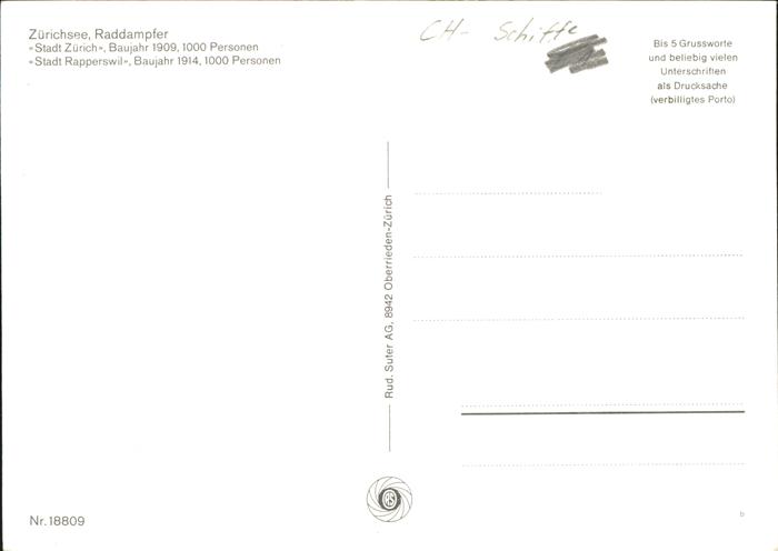 71373643 Dampfer Seitenrad Stadt Zürich Stadt Rapperswil Zürichsee KatCode 22480000000500