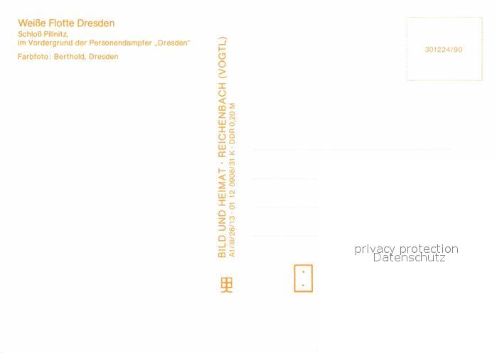 Dampfer Seitenrad Weisse Flotte Dreden Schloss Pillnitz postalisch nicht gelaufen Erhaltung siehe scans [PaolaD17]