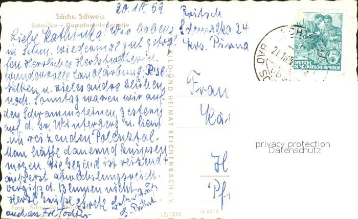 alte Postkarte Dampfer Seitenrad Weltfrieden Schmilka Dampferanlegestelle postalisch gelaufen Erhaltung siehe scans