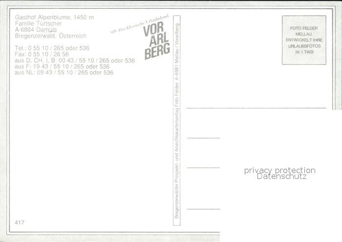 72485250 Damuels Vorarlberg Gasthof Alpenblume postalisch nicht gelaufen Erhaltung siehe scans KatCode: 11390341080209