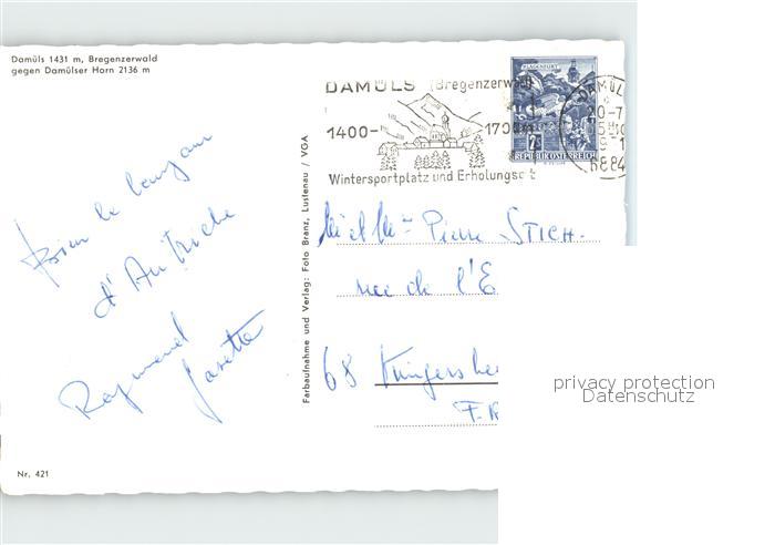 72362241 alte Postkarte Damuels Vorarlberg gegen Damuelser Horn postalisch gelaufen Erhaltung siehe scans KatCode: 11390341080209