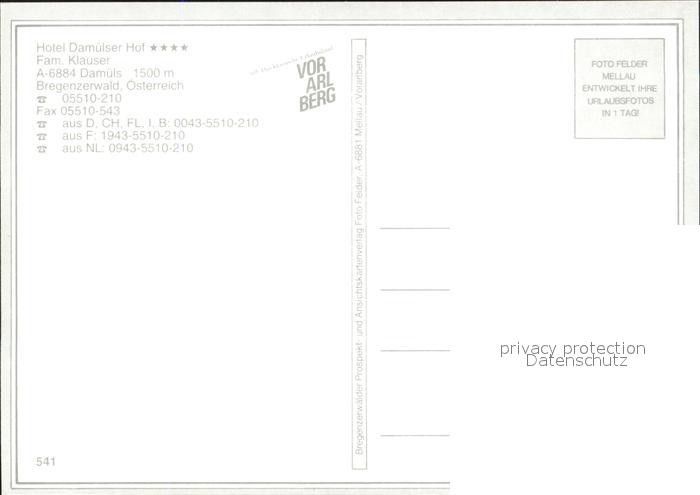 72284999 Damuels Vorarlberg Hotel Damuelser Hof postalisch nicht gelaufen Erhaltung siehe scans KatCode: 11390341080209