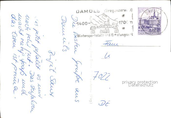 72273225 alte Postkarte Damuels Vorarlberg Panorama Skilifte Teilansicht Skipisten postalisch gelaufen Erhaltung siehe scans KatCode: 11390341080209