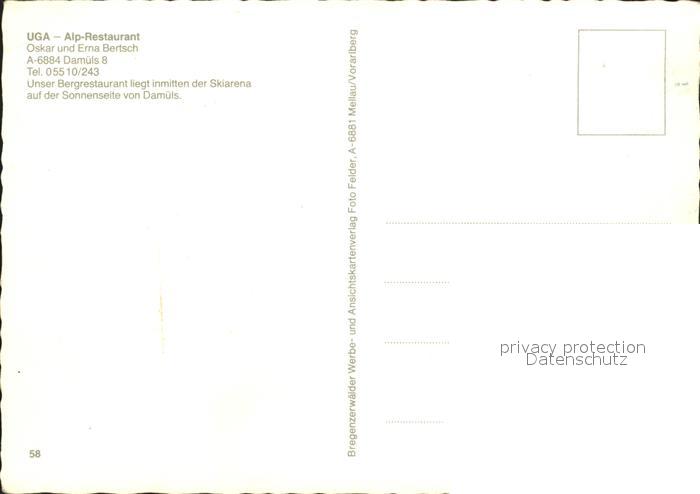 71860030 Damuels Vorarlberg UGA-Alp-Restaurant postalisch nicht gelaufen Erhaltung siehe scans KatCode: 11390341080209