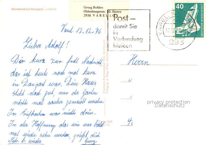 73171271 alte Postkarte Dangast Nordseebad Fliegeraufnahme postalisch gelaufen Erhaltung siehe scans [FriedD77] KatCode: 11110003455026