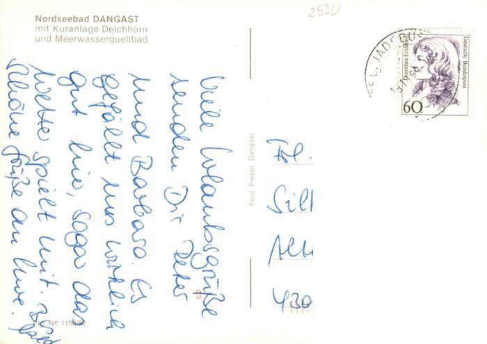 73930733 alte Postkarte Dangast Nordseebad Kuranlage Deichhoern und Meerwasserquellbad Fliegeraufnahme postalisch gelaufen Erhaltung siehe scans [WerneD78] KatCode: 11110003455026