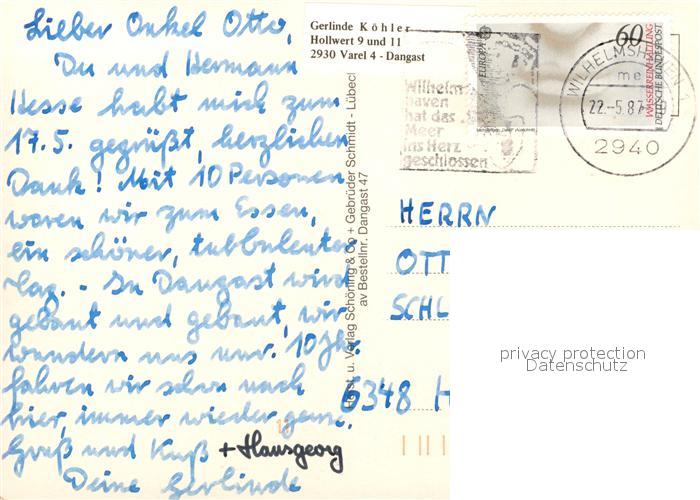 73210613 alte Postkarte Dangast Nordseebad Seehund Leuchtturm Deichhoern Gaststaette Badestrand Kurhaus Yachthafen Campingplatz Fliegeraufnahme postalisch gelaufen Erhaltung siehe scans [FriedD77] KatCode: 11110003455026