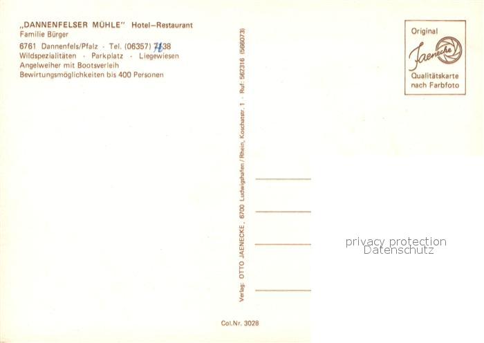 73087766 Dannenfels Dannenfelser Muehle Hotel Restaurant postalisch nicht gelaufen Erhaltung siehe scans [KathaD81] KatCode: 11110007333013