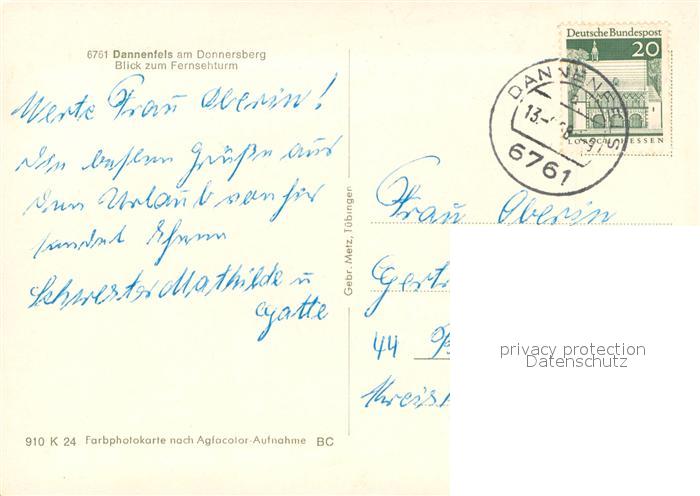 73668510 alte Postkarte Dannenfels Fliegeraufnahme mit Fernsehturm postalisch gelaufen Erhaltung siehe scans [WerneD78] KatCode: 11110007333013
