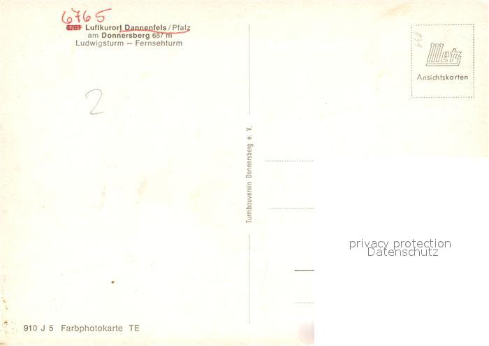 73257511 Dannenfels Ludwigsturm und Fernsehturm am Donnersberg postalisch nicht gelaufen Erhaltung siehe scans [FriedD77] KatCode: 11110007333013