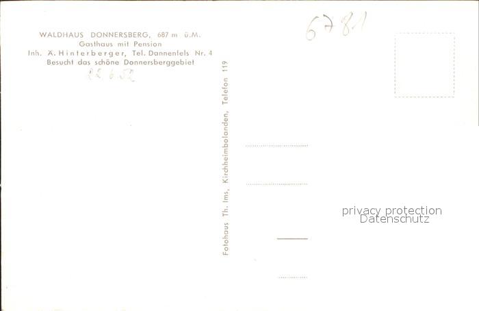 41586309 Dannenfels Waldhaus Donnersberg Gasthaus Pension postalisch nicht gelaufen Erhaltung siehe scans Alte Ansichtskarte Postkarte hz_F Katcode 11110007333013