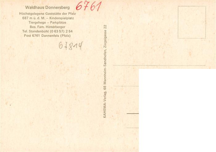 73888133 Dannenfels Waldhaus Donnersberg Gaststaette postalisch nicht gelaufen Erhaltung siehe scans [FriedD77] KatCode: 11110007333013