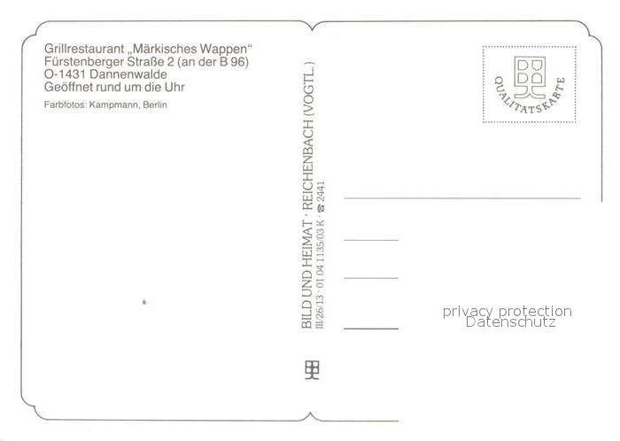 73085442 Dannenwalde Gransee Grillrestaurant Maerkisches Wappen postalisch nicht gelaufen Erhaltung siehe scans [NatalD47] KatCode: 11110012065100