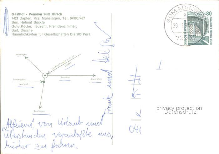 72356035 alte Postkarte Dapfen Gasthof Pension zum Hirsch postalisch gelaufen Erhaltung siehe scans KatCode: 11110008415027