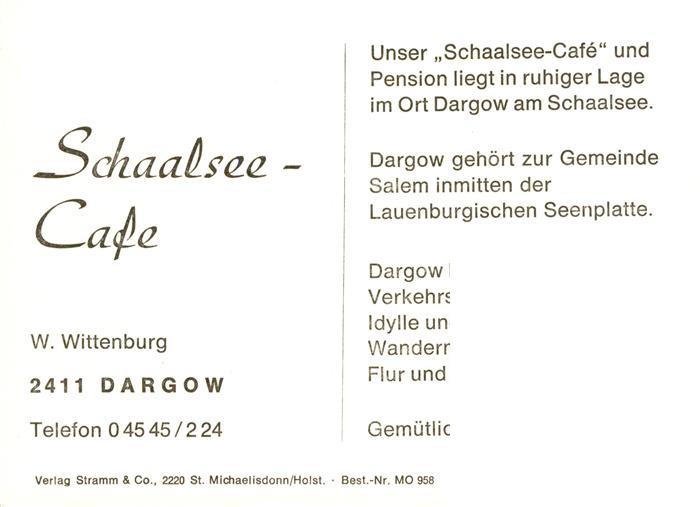 73922686 Dargow Schaalsee Cafe postalisch nicht gelaufen Werbekarte (keine Postkarte) Erhaltung siehe scans [WerneD78] KatCode: 11110001053107