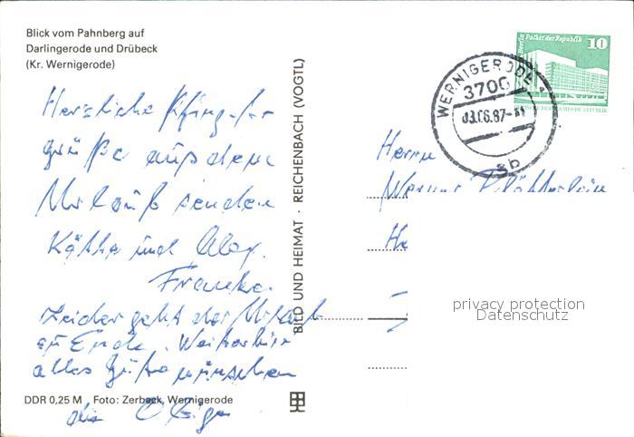 72474033 alte Postkarte Darlingerode Panorama Blick vom Pahnberg nach Druebeck postalisch gelaufen Erhaltung siehe scans KatCode: 11110015085080