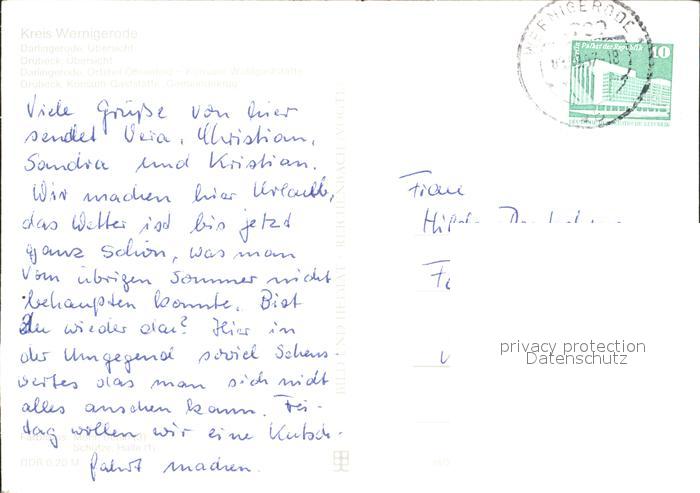 72332304 alte Postkarte Darlingerode und Druebeck Konsum Gaststaetten Fachwerkhaus postalisch gelaufen Erhaltung siehe scans KatCode: 11110015085080
