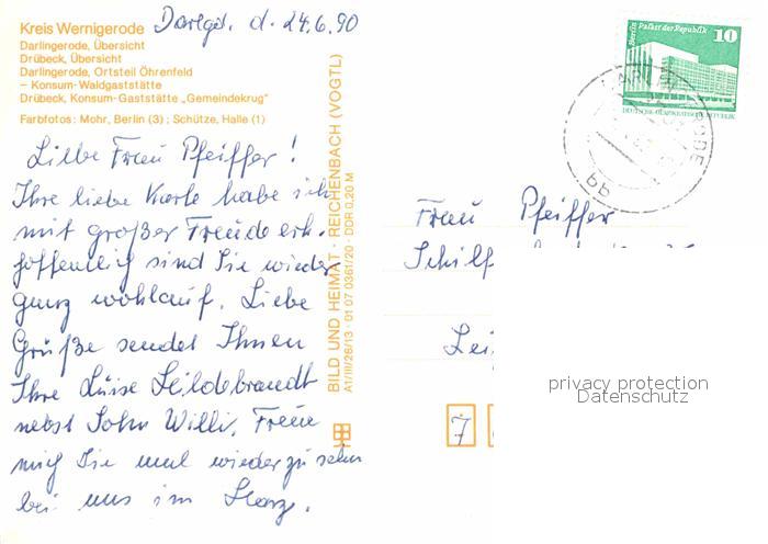 72727795 alte Postkarte Darlingerode und Druebeck Restaurant Gemeindekrug postalisch gelaufen Erhaltung siehe scans [LiesaD40] KatCode: 11110015085080