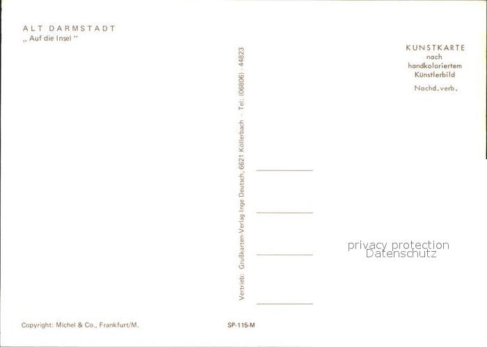 72310899 Darmstadt Auf die Insel postalisch nicht gelaufen Erhaltung siehe scans KatCode: 11110006411000