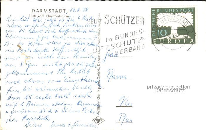 72600721 alte Postkarte Darmstadt Blick vom Hochzeitsturm postalisch gelaufen Erhaltung siehe scans [LiesaD40] KatCode: 11110006411000
