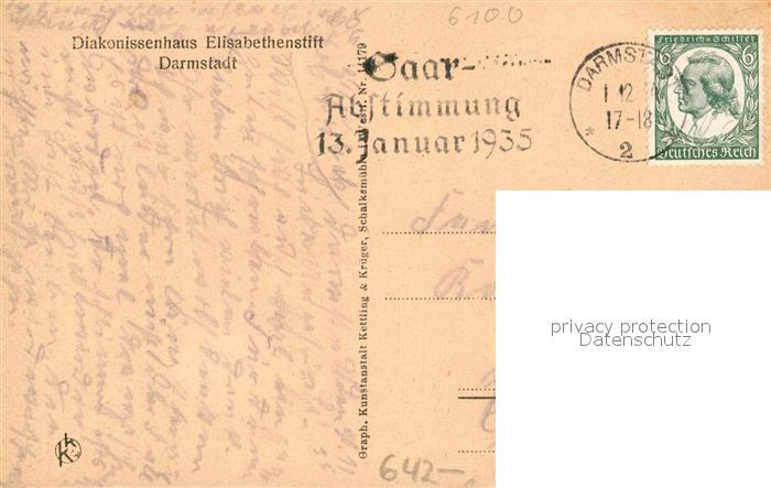 43057043 alte Postkarte Darmstadt Elisabethenstift Veranda postalisch gelaufen Erhaltung siehe scans [KathaD81] KatCode: 11110006411000