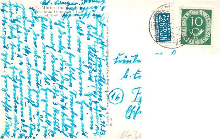 73914700 alte Postkarte Darmstadt Ev Muettererholungsheim postalisch gelaufen Erhaltung siehe scans [FriedD77] KatCode: 11110006411000